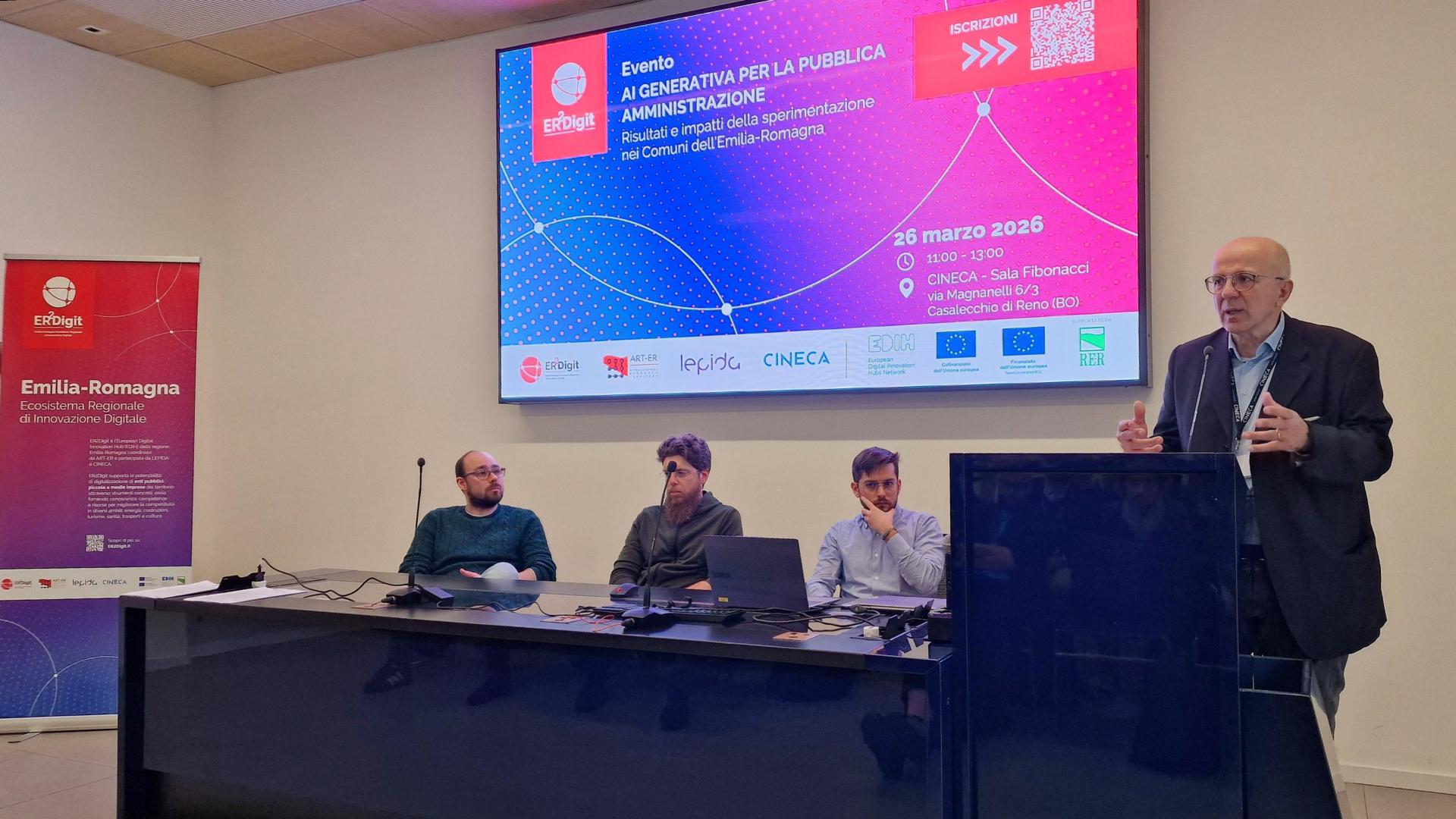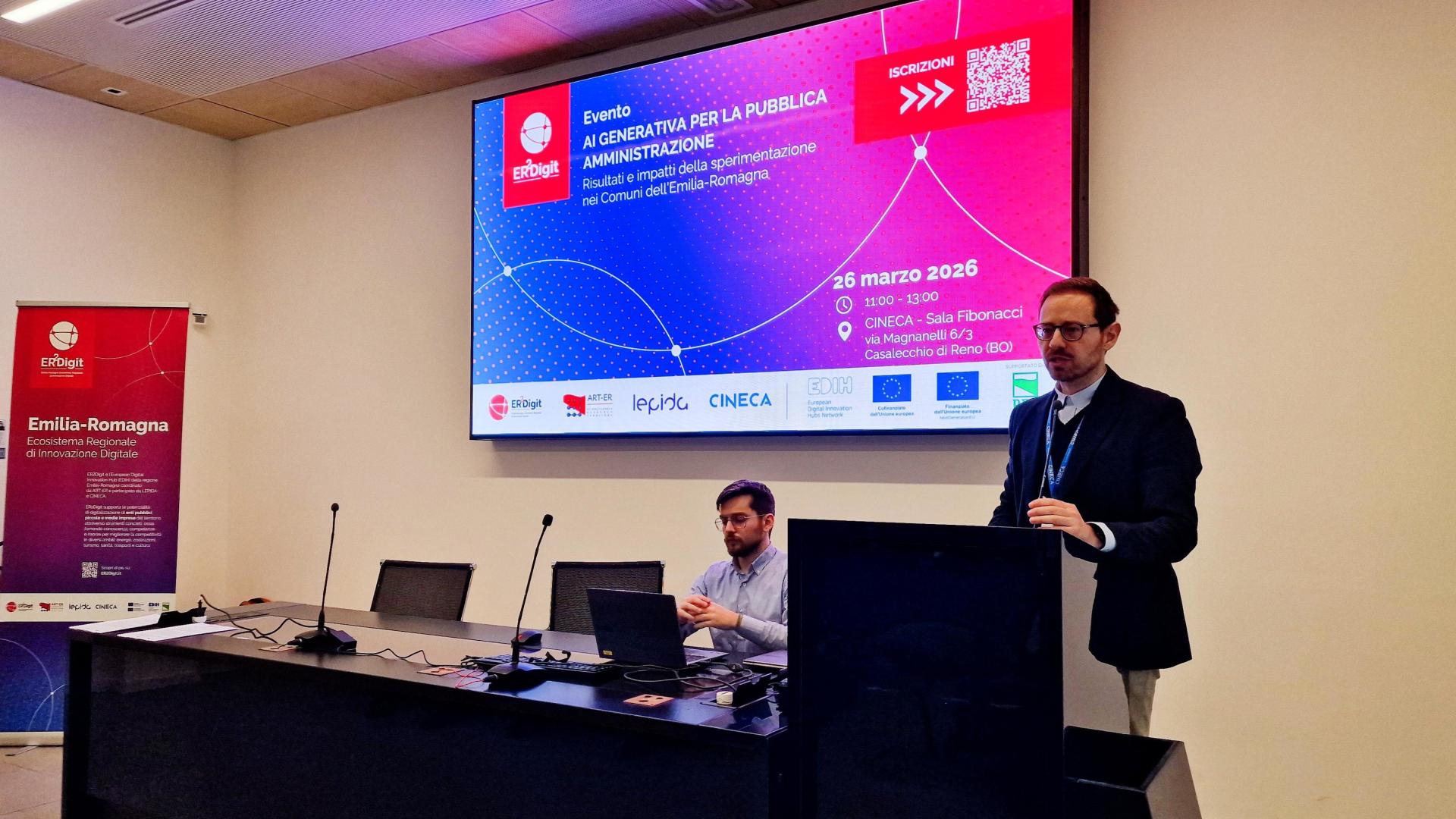ER2Digit, European Digital Innovation Hub della regione Emilia-Romagna, ti invita all'evento "AI generativa per la PA – Risultati e impatti della sperimentazione nei Comuni dell’Emilia-Romagna" in programma giovedì 26 marzo 2026, dalle ore 11:00 alle 13:00 presso la sede di CINECA in via Magnanelli 6/3 a Casalecchio di Reno, in Sala Fibonacci.